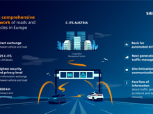 "Cooperative intelligent transport systems realise the vision of safe and intelligent mobility of the future", says Prof. Gerd Riegelhuth, President of Hessen Mobil. He continued: "The direct exchange of data and information between vehicles and the road infrastructure will significantly increase road safety by means of early hazard warnings in the vehicle. A targeted harmonisation of traffic flow helps to avoid traffic jams and reduce emissions".