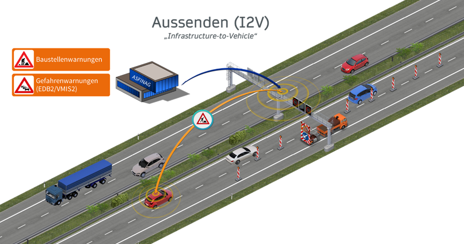 Sending signals from ASFINAG´s traffic control center to vehicles via C-ITS roadside untits approaching danger zones